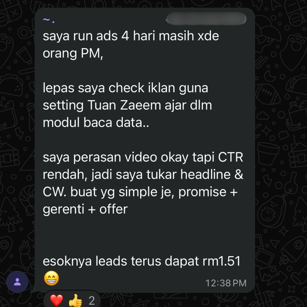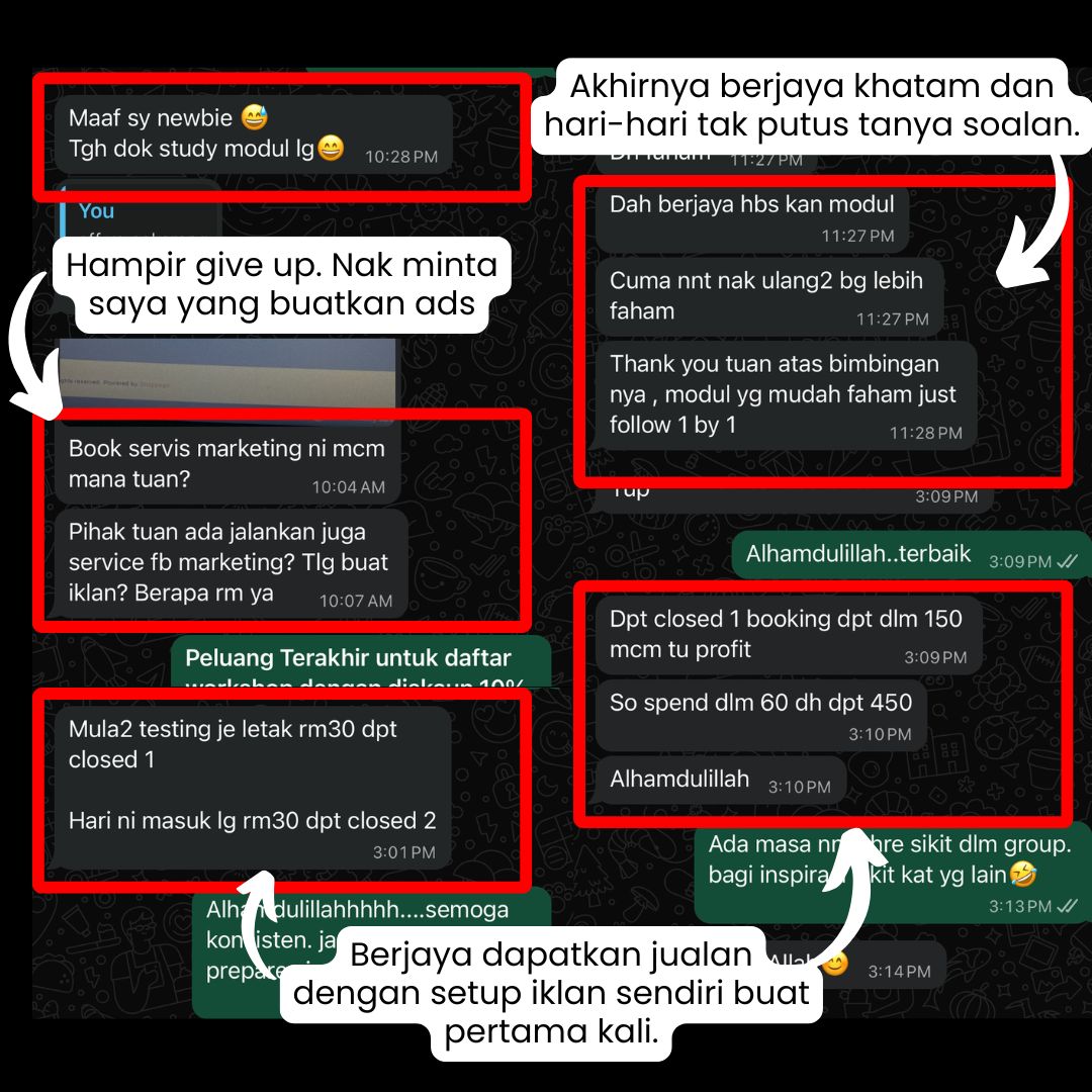 Jika anda baru nak mula atau baru setahun menjalankan kempen Facebook ads dan anda tidak belajar apa-apa dalm modul ini, anda boleh hubungi saya beserta pandangan anda dan saya akan refund wang anda 100% tanpa banyak soal.
