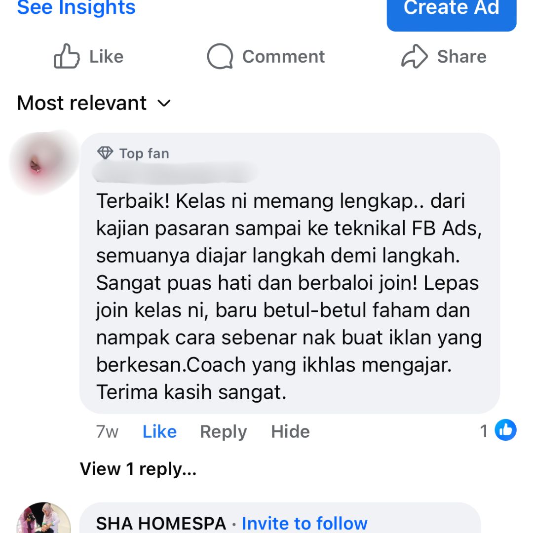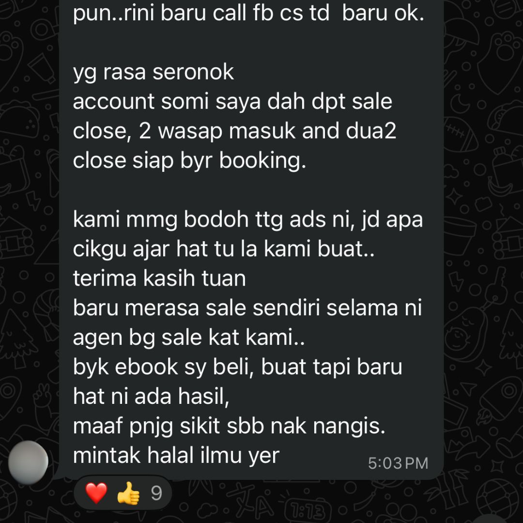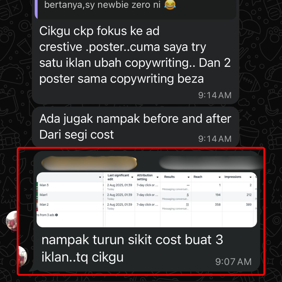 Anda dah tahu cara nak baca data iklan dan tahu nak buat decision iklan mana yang patut scale up dan iklan mana yang patut kena off.